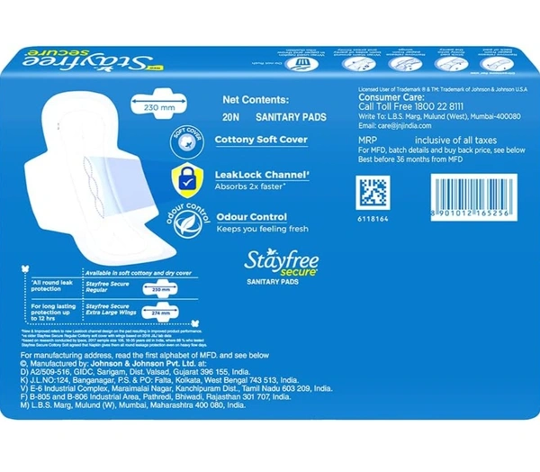 Stayfree Secure Cottony Wings (Pack of 20) Regular Size Goshop.in